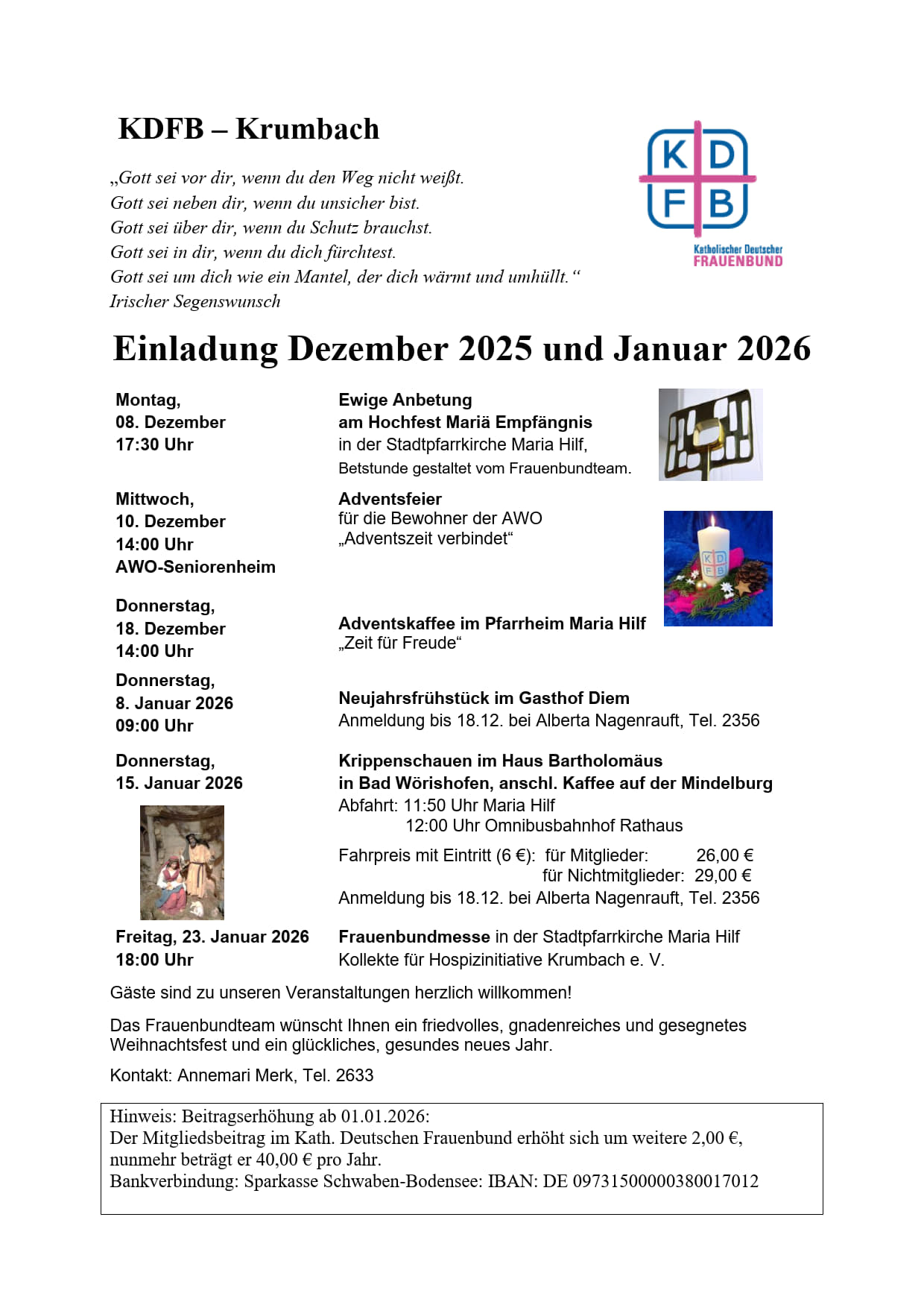 Der Kath. Frauenbund – Zweigverein Krumbach – , gegründet im Jahr 1918, zählt derzeit etwa 120 Mitglieder.