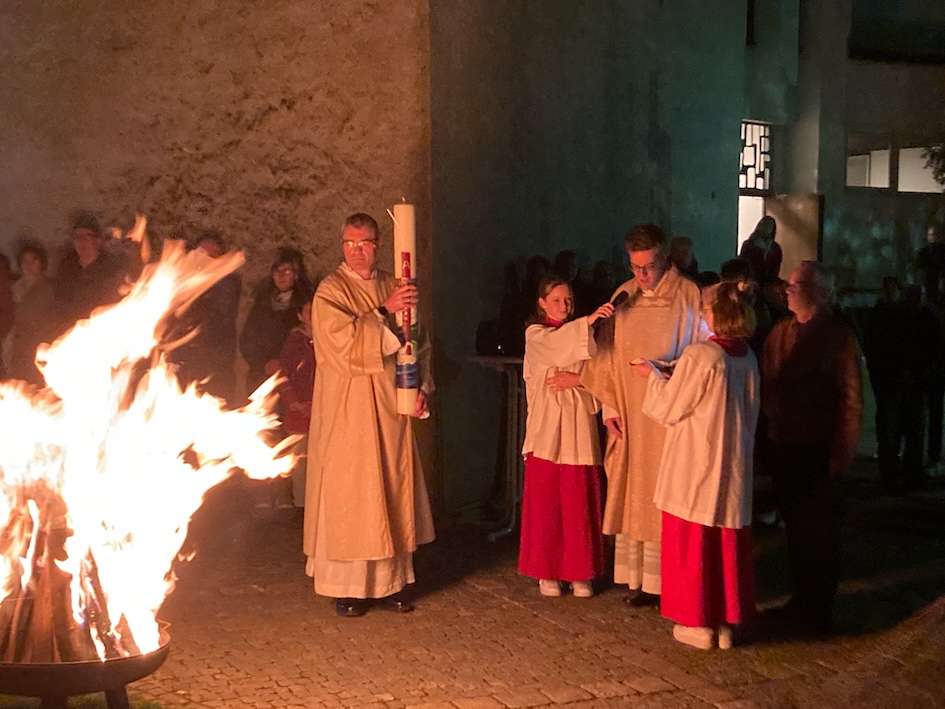 Nach den durchschnittlich über 20 gelaufenen Kilometern ging es dann am Abend noch weiter mit der Osternacht mit Jugendpfarrer Daniel Rietzler.